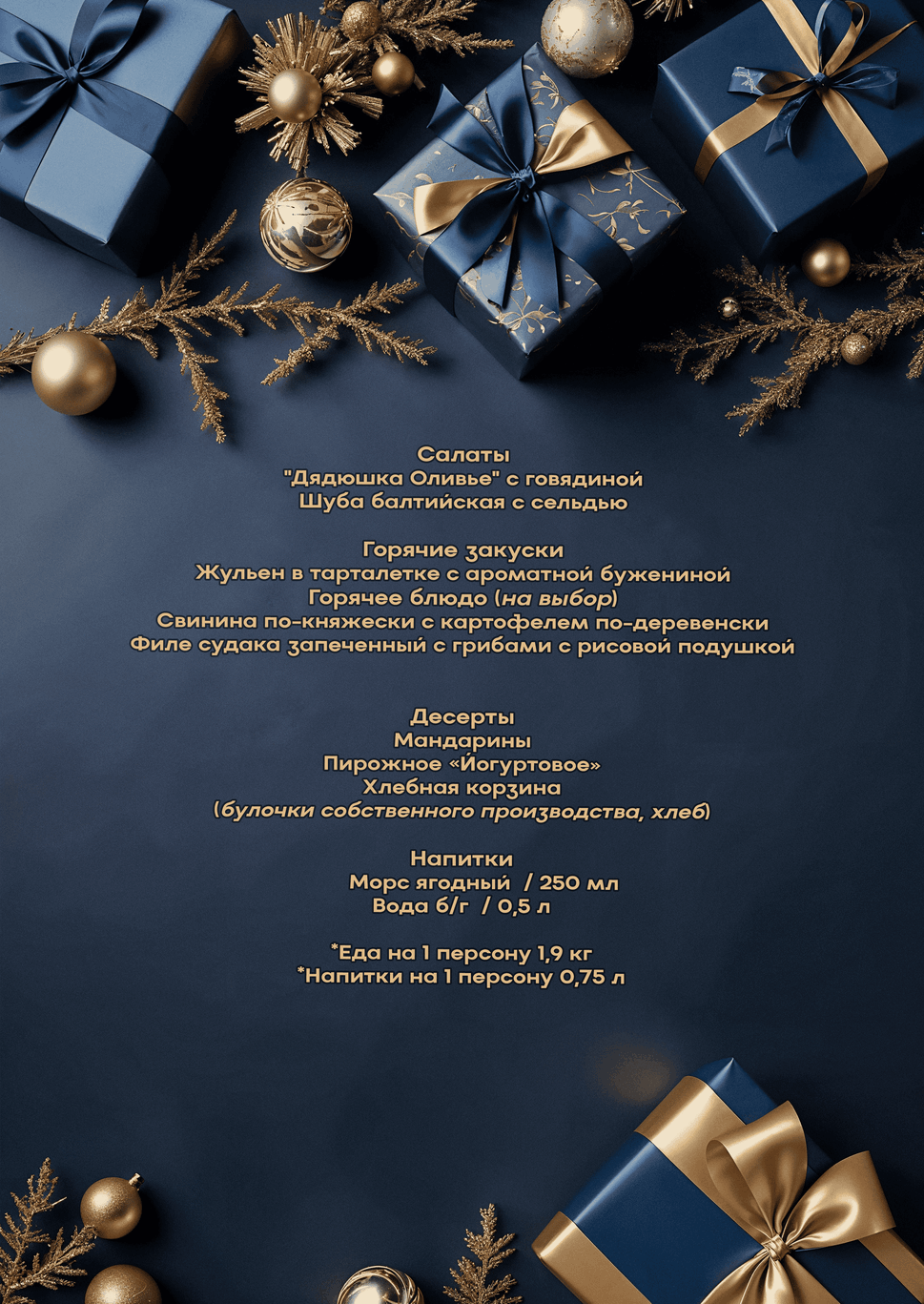 *По желанию /за доп. плату/ Новогодний банкет в отеле «Балтика». 11500 руб./взрослый, 8000 ребенок (3-14 лет включительно) вместе с развлекательной программой.